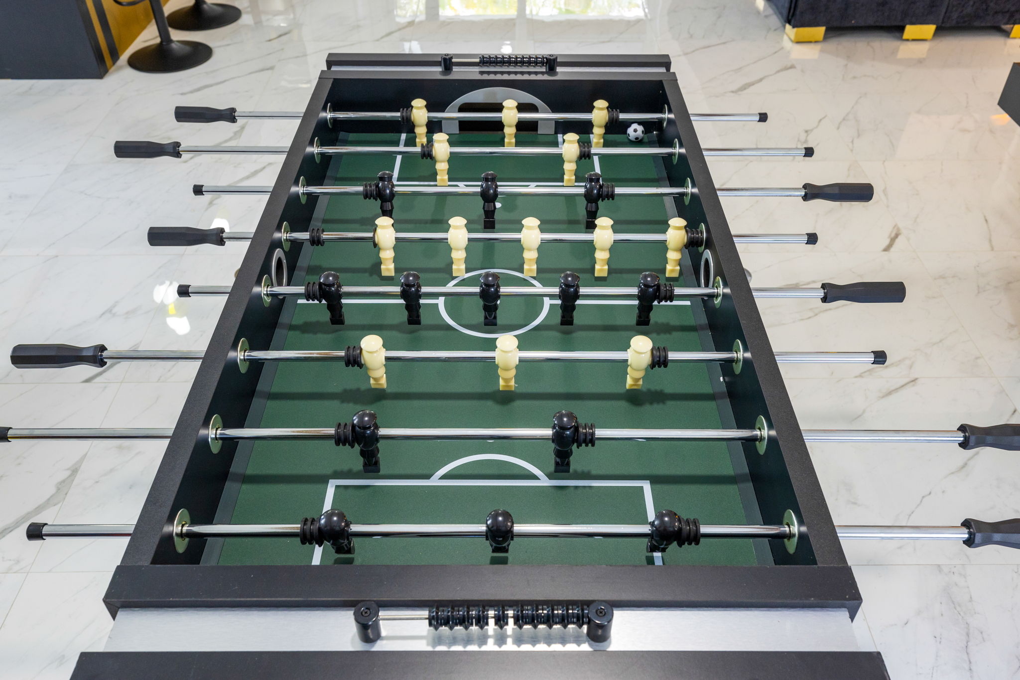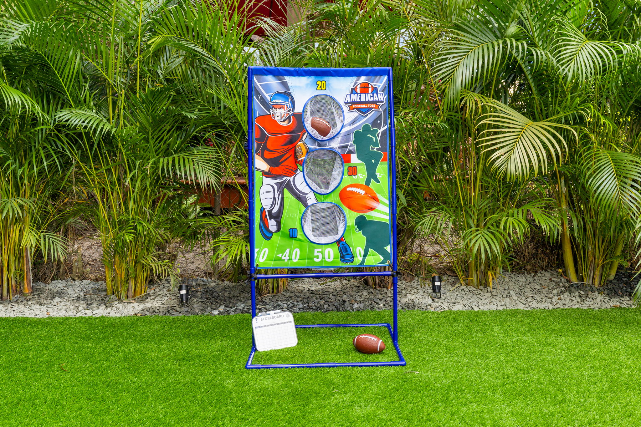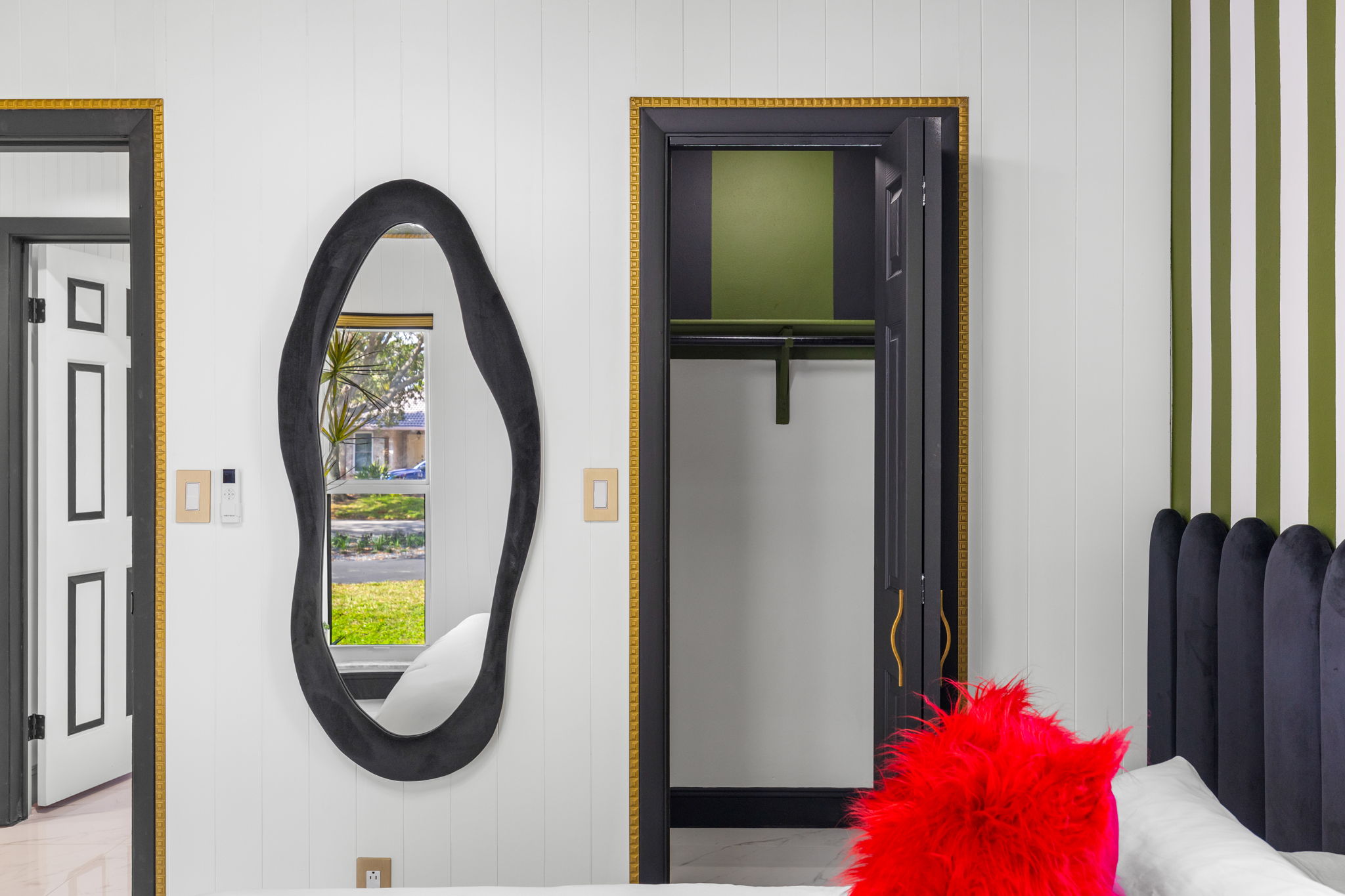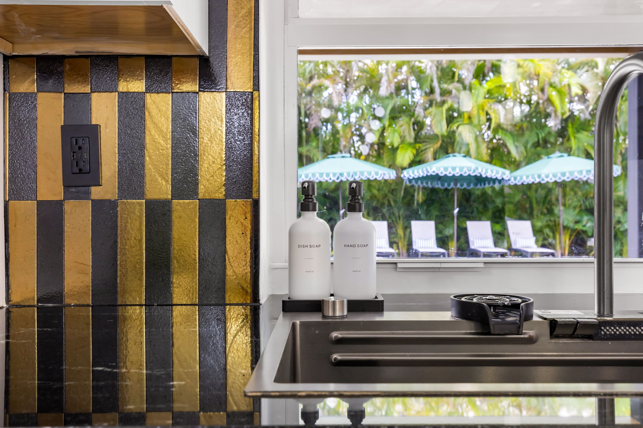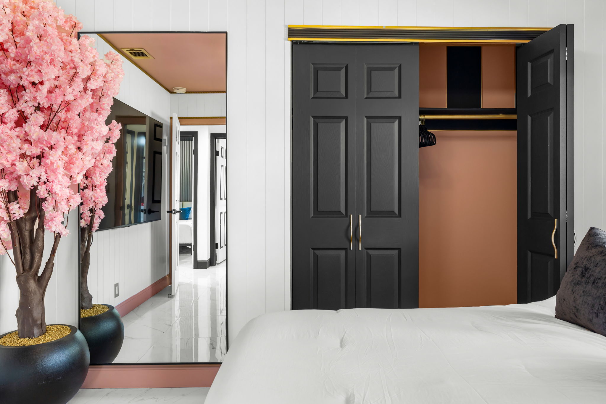 Entertainment options abound, making this property an ideal gathering spot. The living area includes impressive 85-inch televisions, while the resort-style backyard features a heated pool, hot tub, outdoor fire pit, and barbecue area. For added fun, a mini-golf setup and premium artificial turf offer low-maintenance convenience. The home comfortably accommodates up to 12 guests, making it perfect for families or social gatherings.