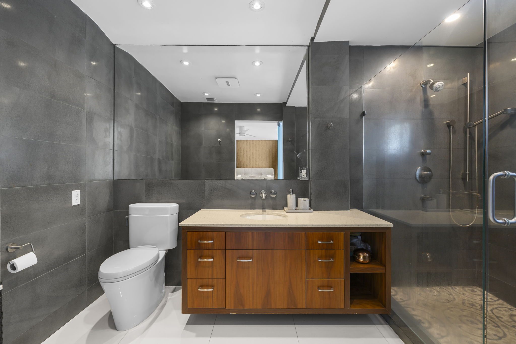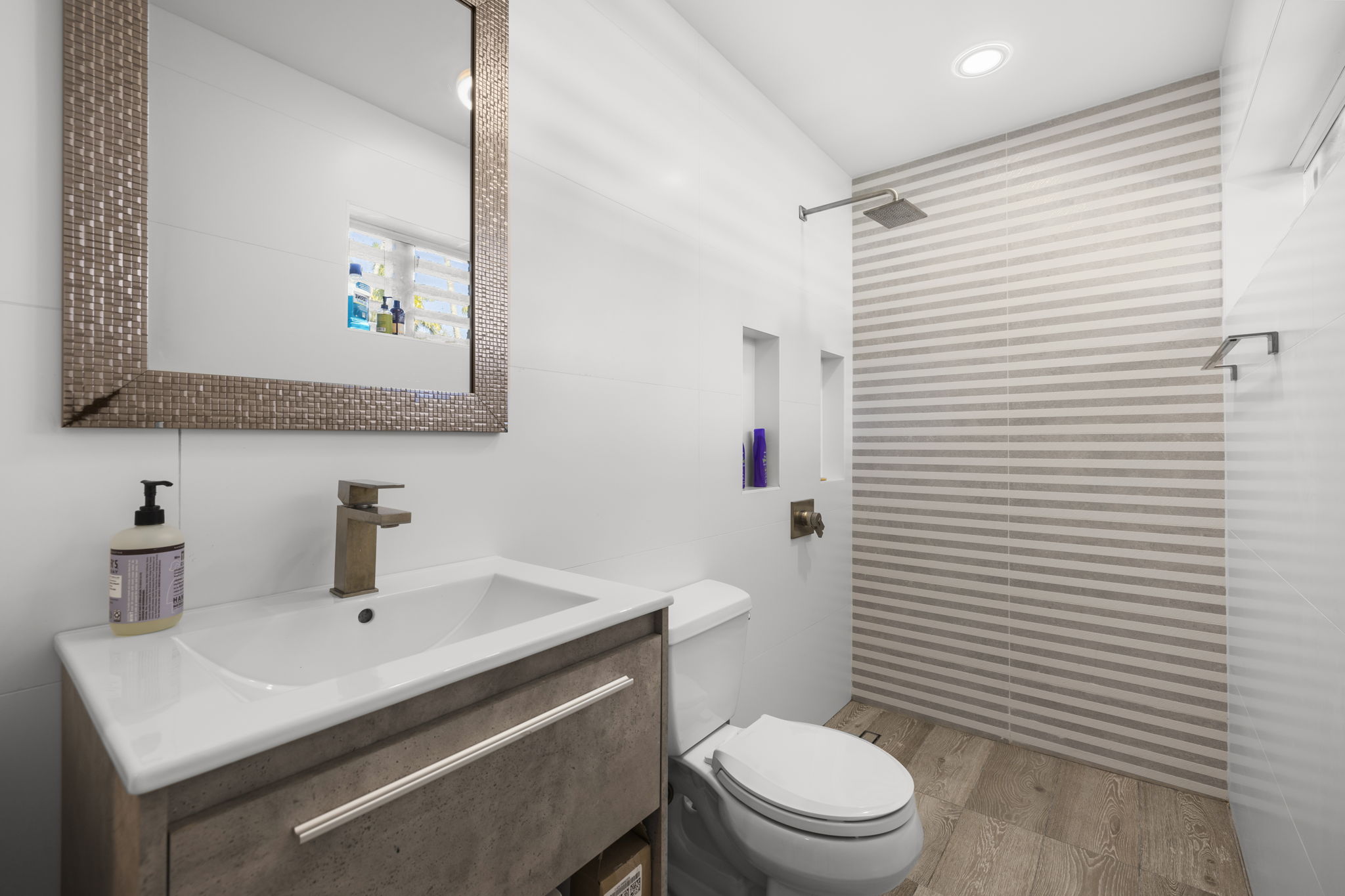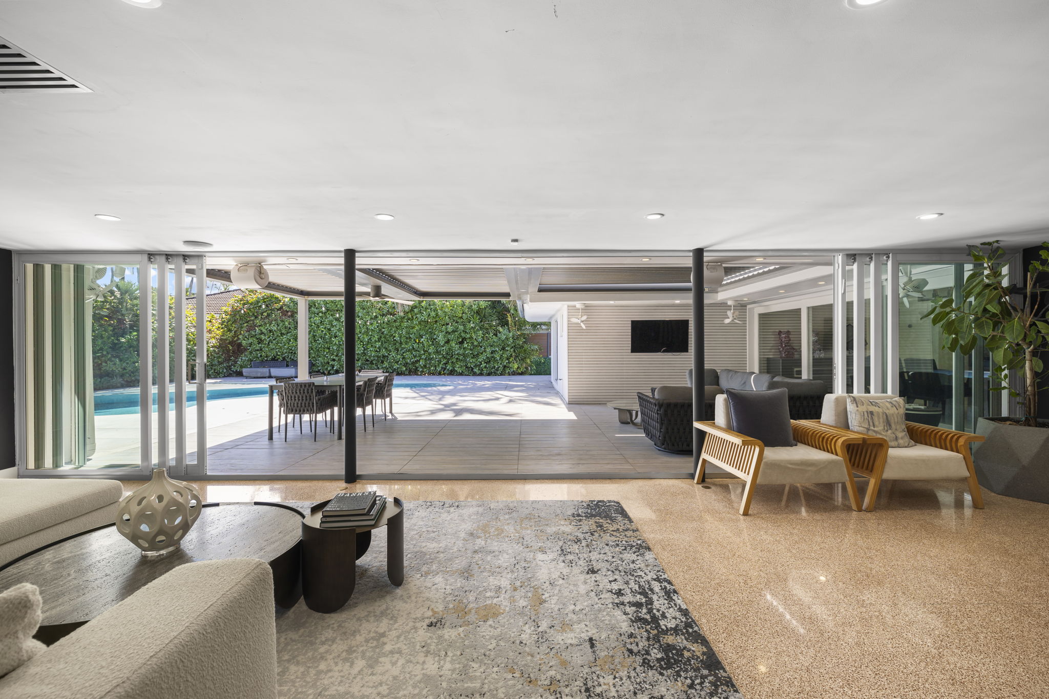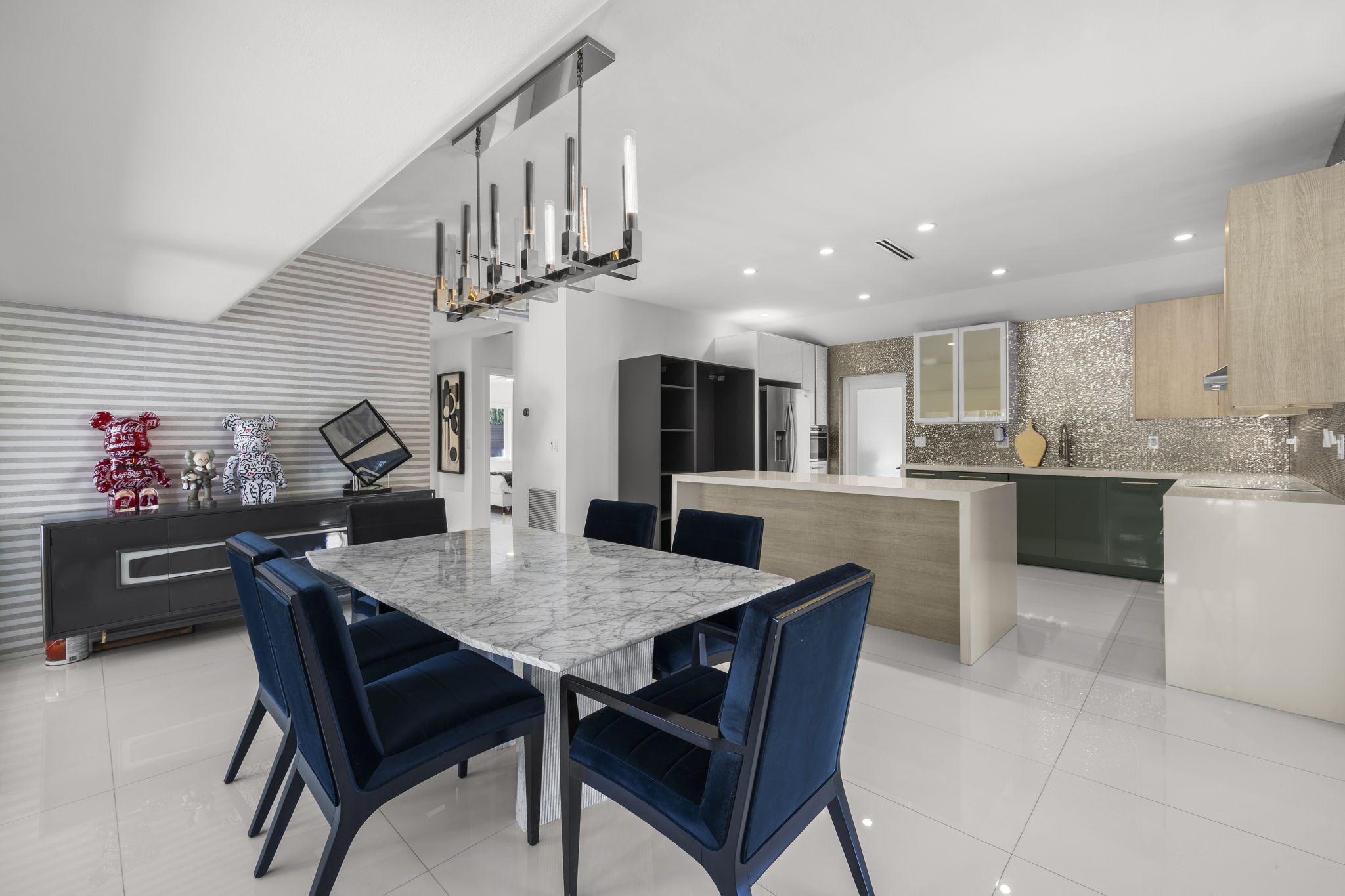 This meticulously upgraded residence presents a perfect blend of timeless design and modern amenities, embodying the essence of South Florida living. Spanning 2,988 square feet, it offers two spacious bedrooms and three well-appointed bathrooms, providing ample space for both comfort and entertainment. The stylish terrazzo and white tile flooring throughout enhances the home’s contemporary aesthetic.