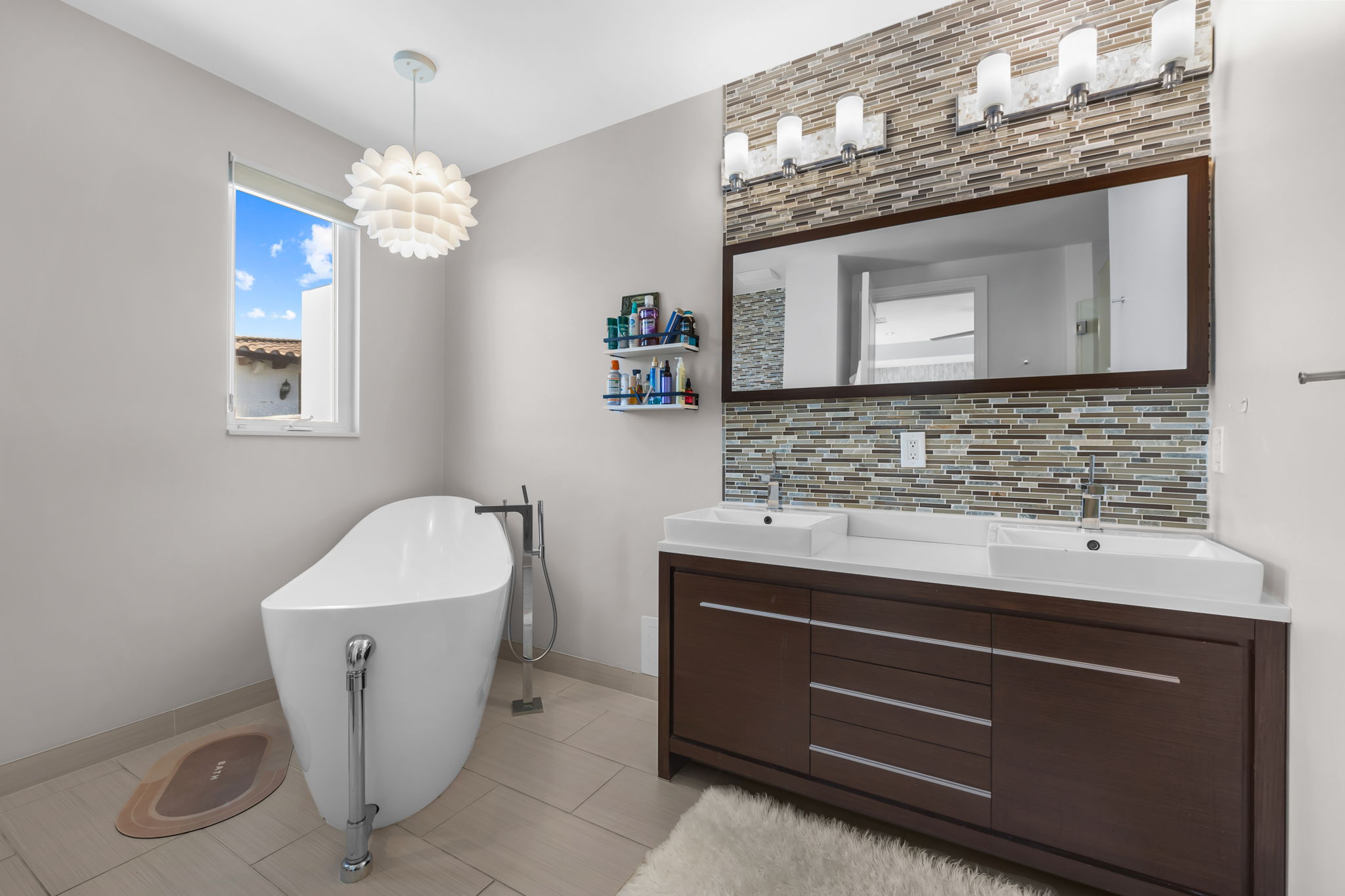 Additional features include a metal roof, a secure walled courtyard with a private pool, and a reverse osmosis water system for enhancing water quality. The spacious two-car garage is accompanied by an oversized driveway with capacity for four additional vehicles, offering convenience and ease.