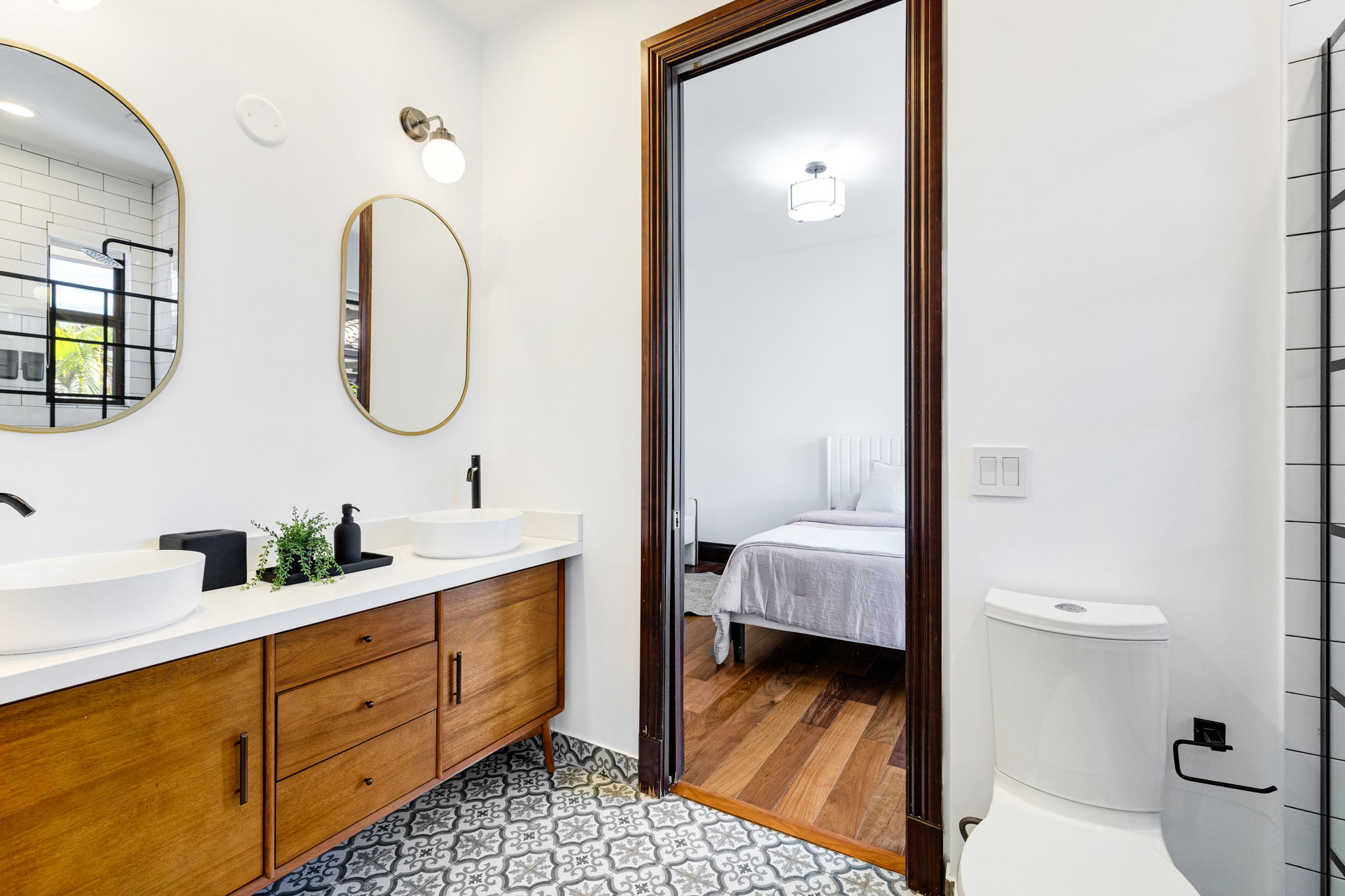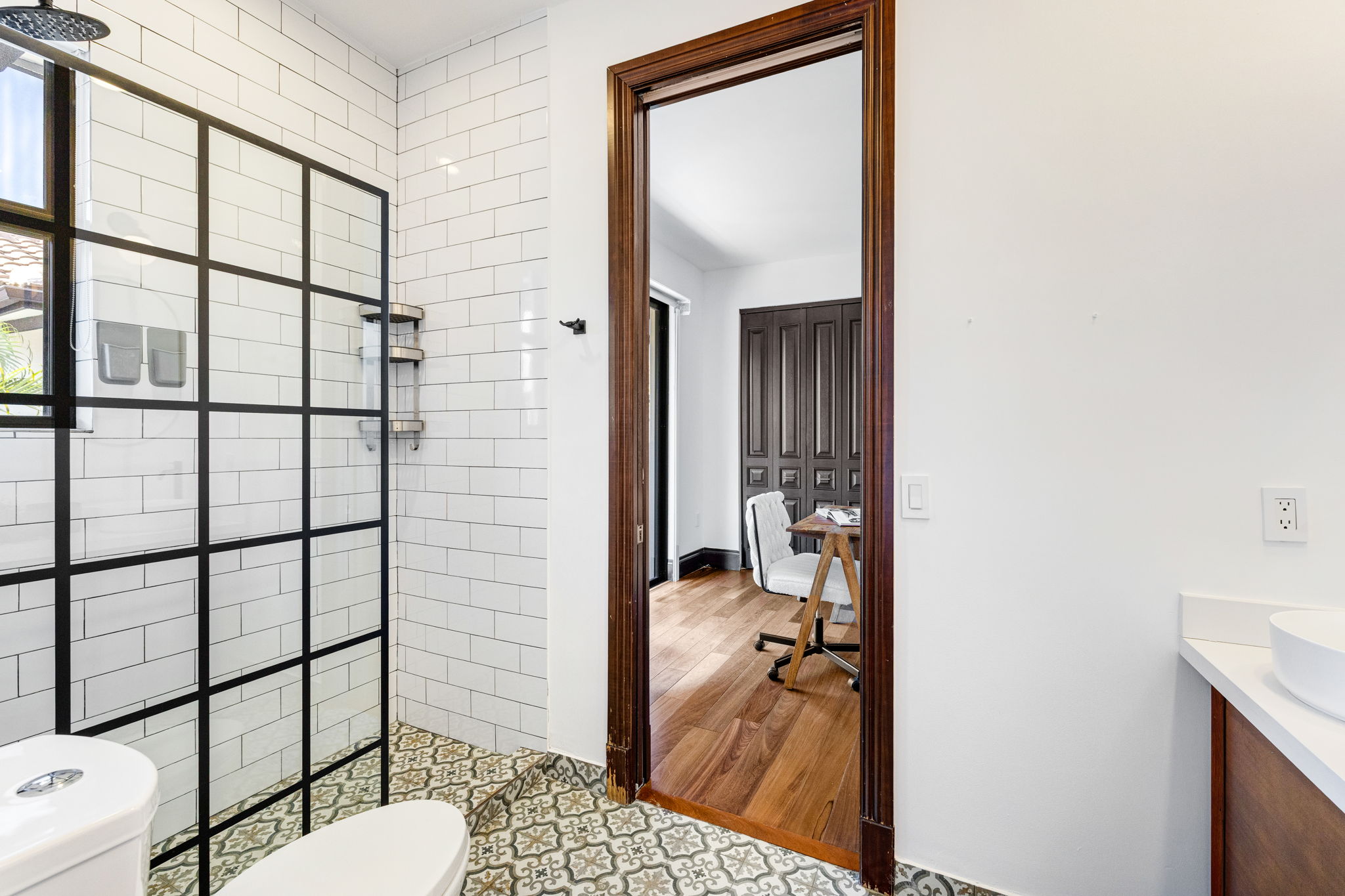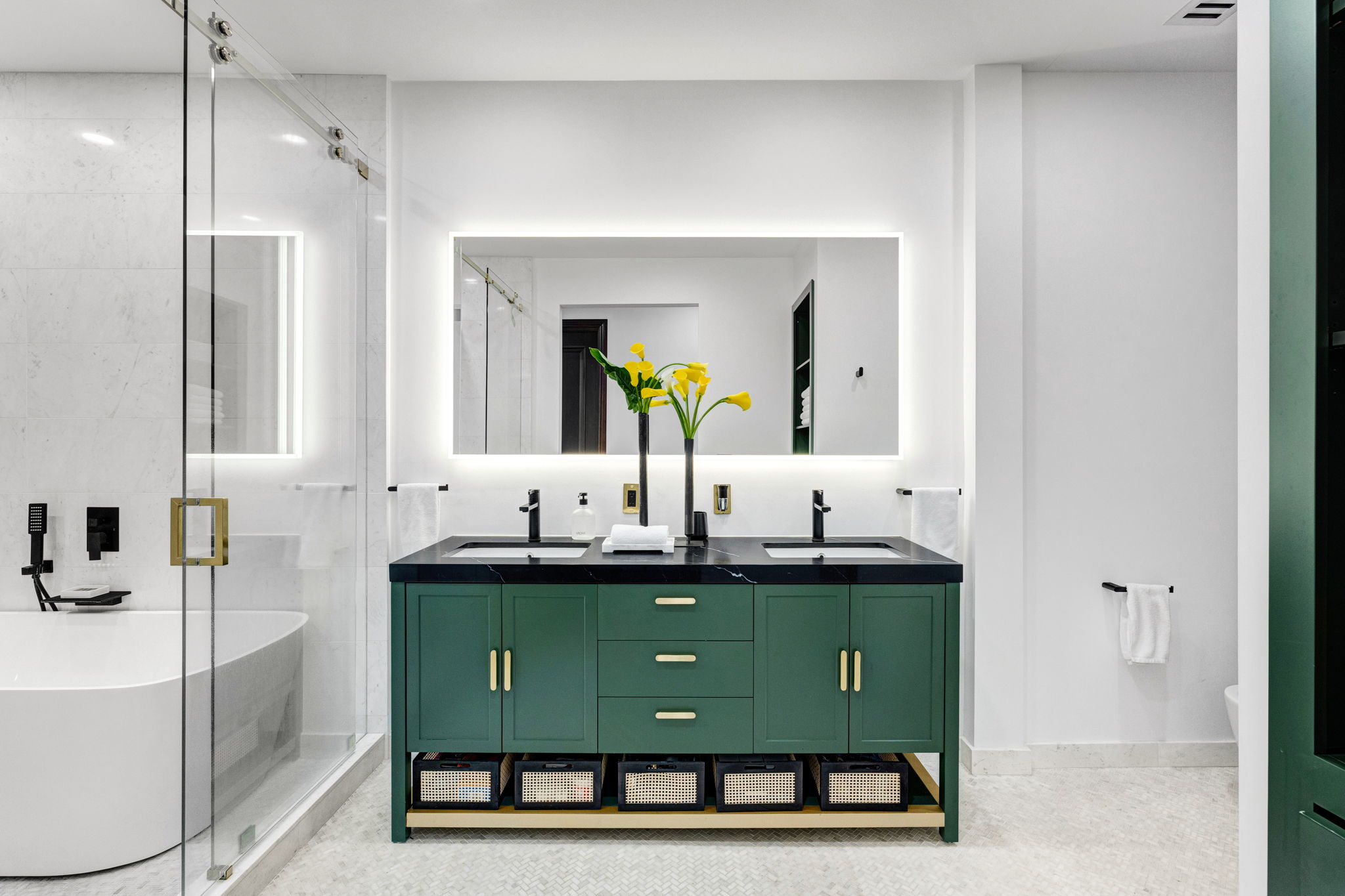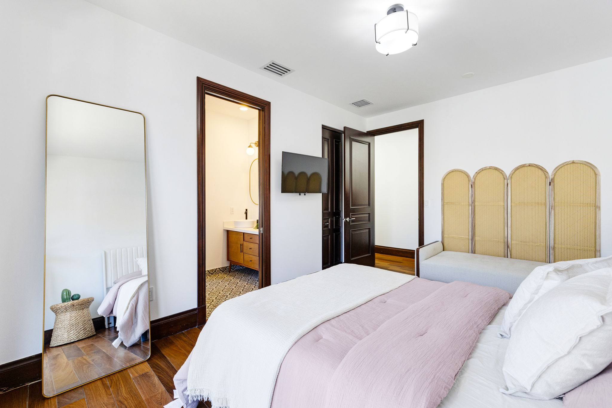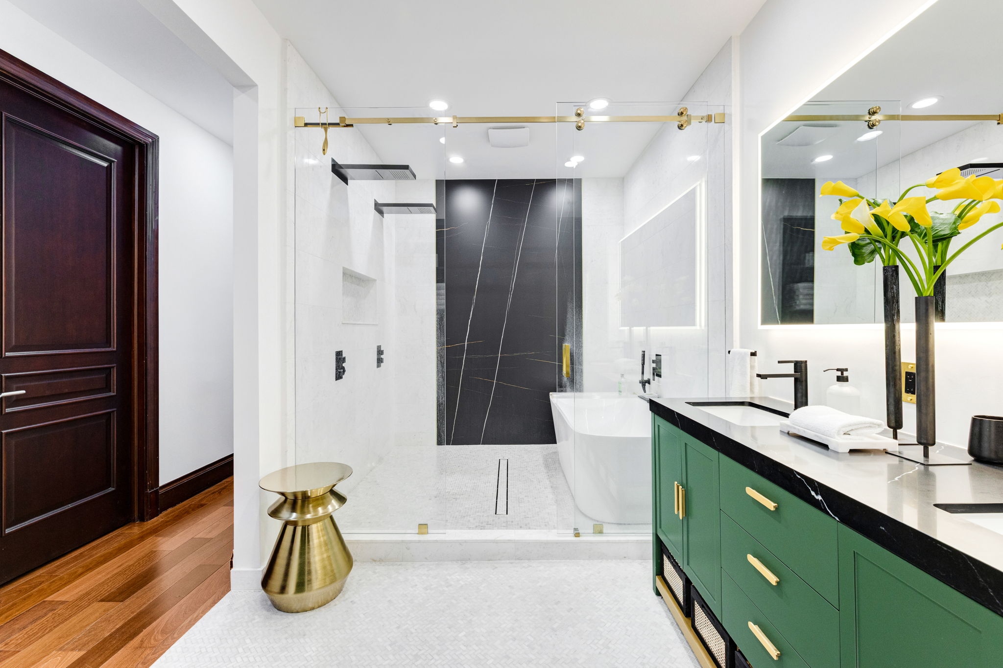 The heart of the home is the fully renovated chef's kitchen, complete with top-of-the-line appliances, a gas cooktop, custom cabinetry, and ample storage. It flows effortlessly into a generous family room, providing a perfect setting for gatherings. Each bedroom is ensuite, ensuring privacy and convenience, while oversized closets add to the home's appeal.