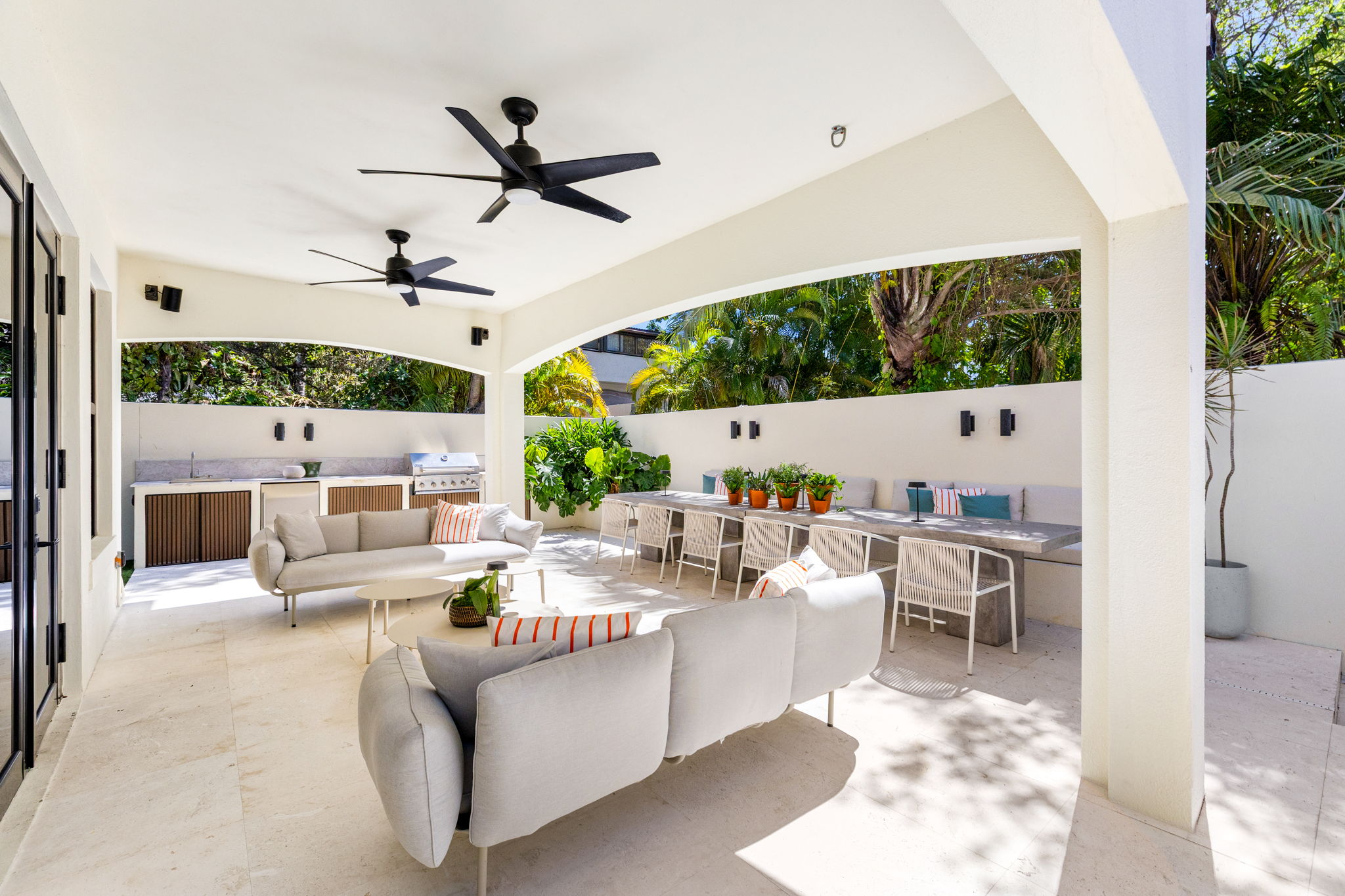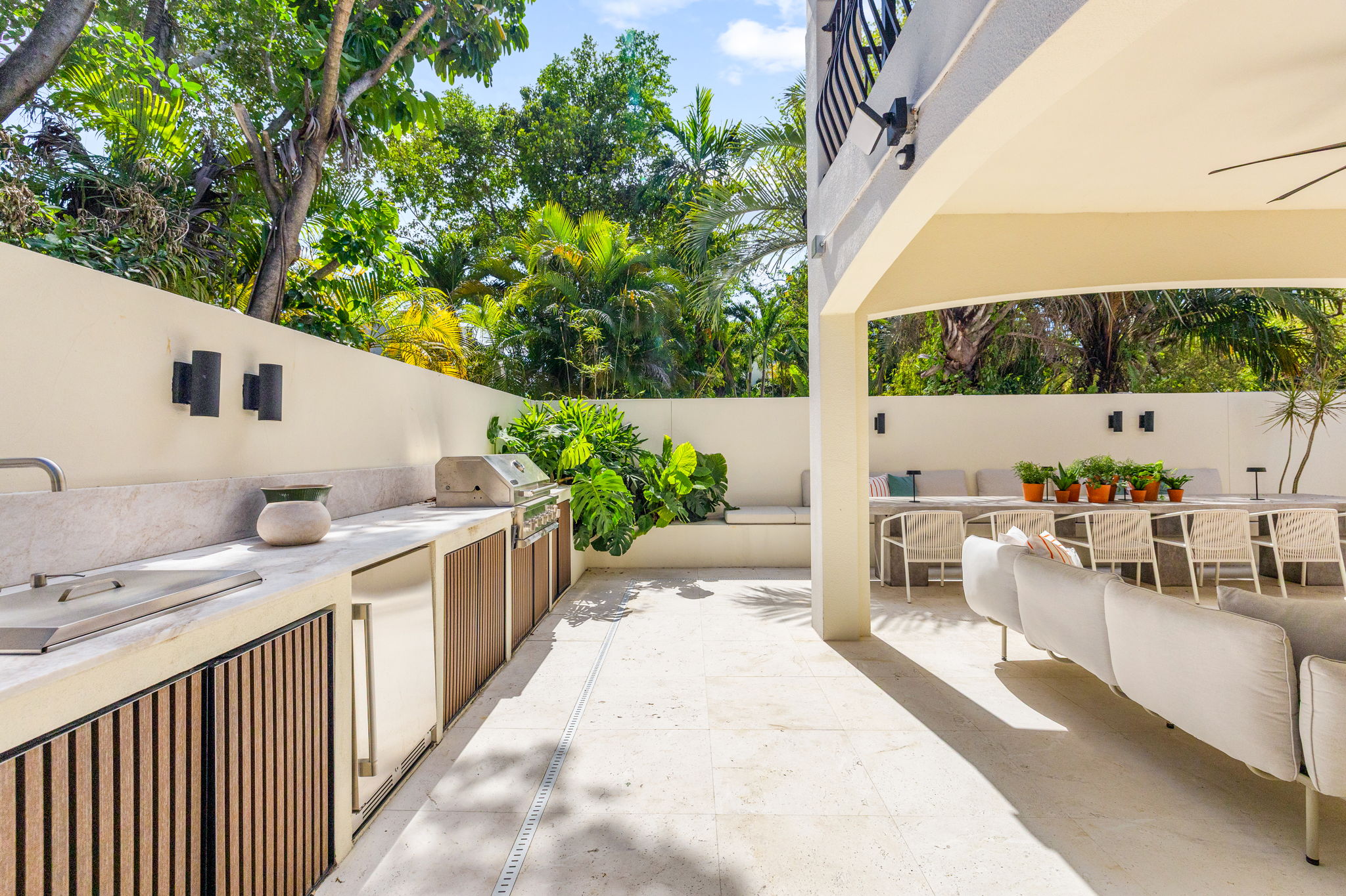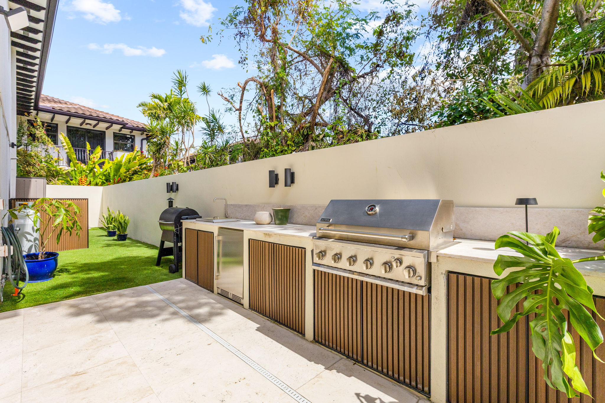 Outdoor living is thoughtfully incorporated with a summer kitchen, large covered patio, and an additional terrace off the primary suite, making it perfect for entertaining or relaxing in the Miami sunshine. The two-car garage provides secure parking and extra storage, complementing this well-rounded residence.