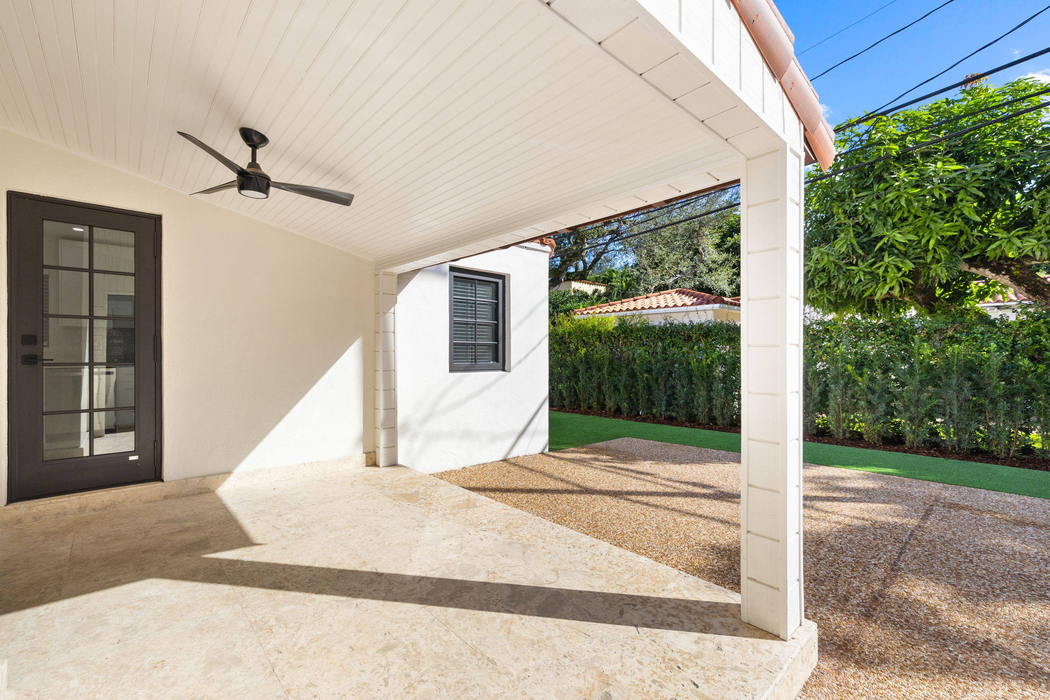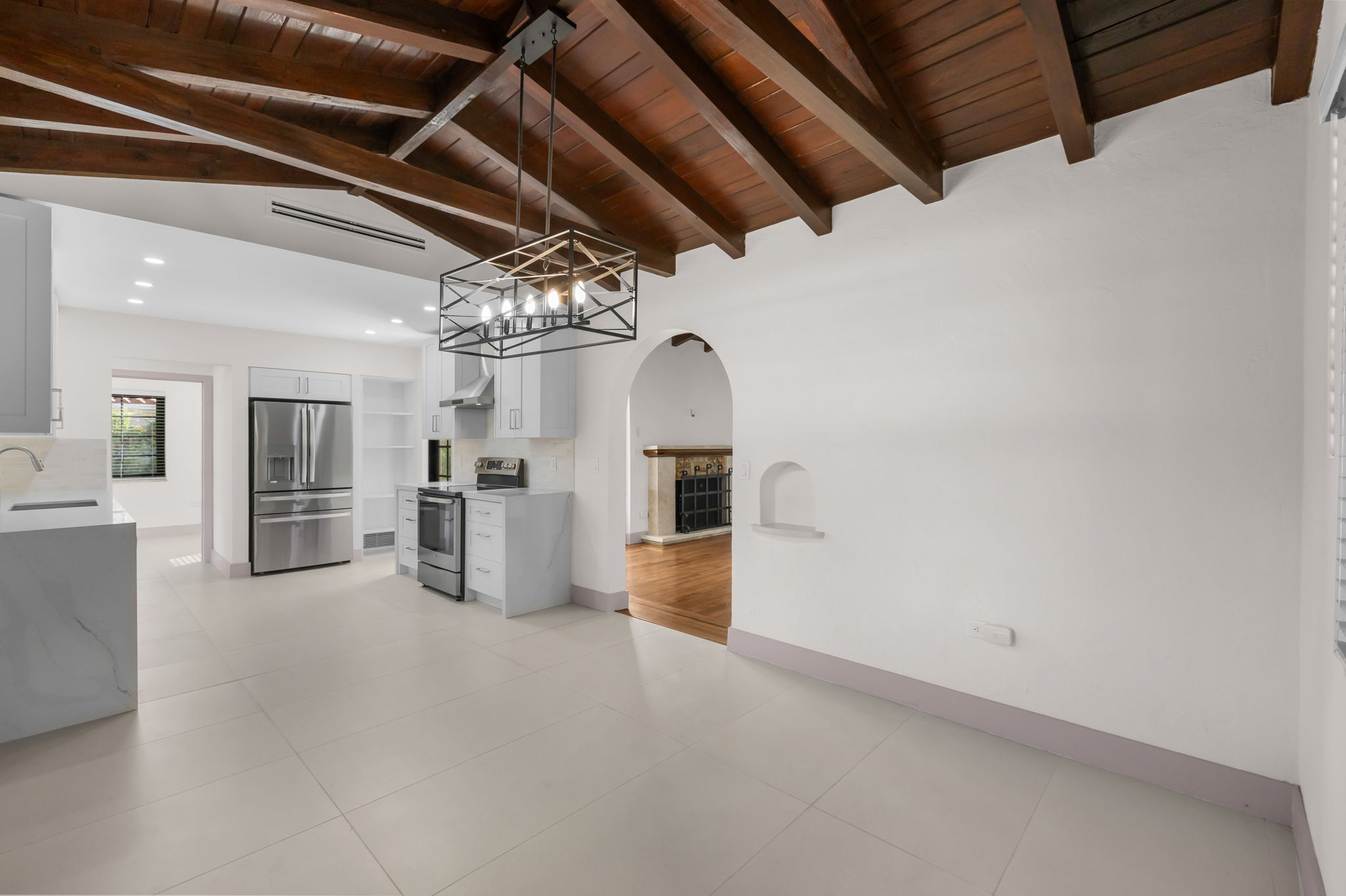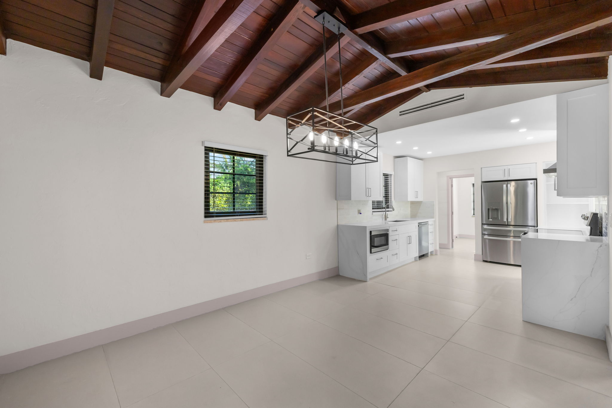 This charming home in the Golden Triangle offers a unique blend of historical character and modern amenities, ideal for a comfortable lifestyle. Built in 1938 and fully restored, this single-level residence features three bedrooms and three bathrooms, thoughtfully designed for ease of living. The interior boasts soaring cathedral ceilings and carefully curated spaces that create an inviting atmosphere, accentuated by impact windows and doors that enhance both safety and natural light.