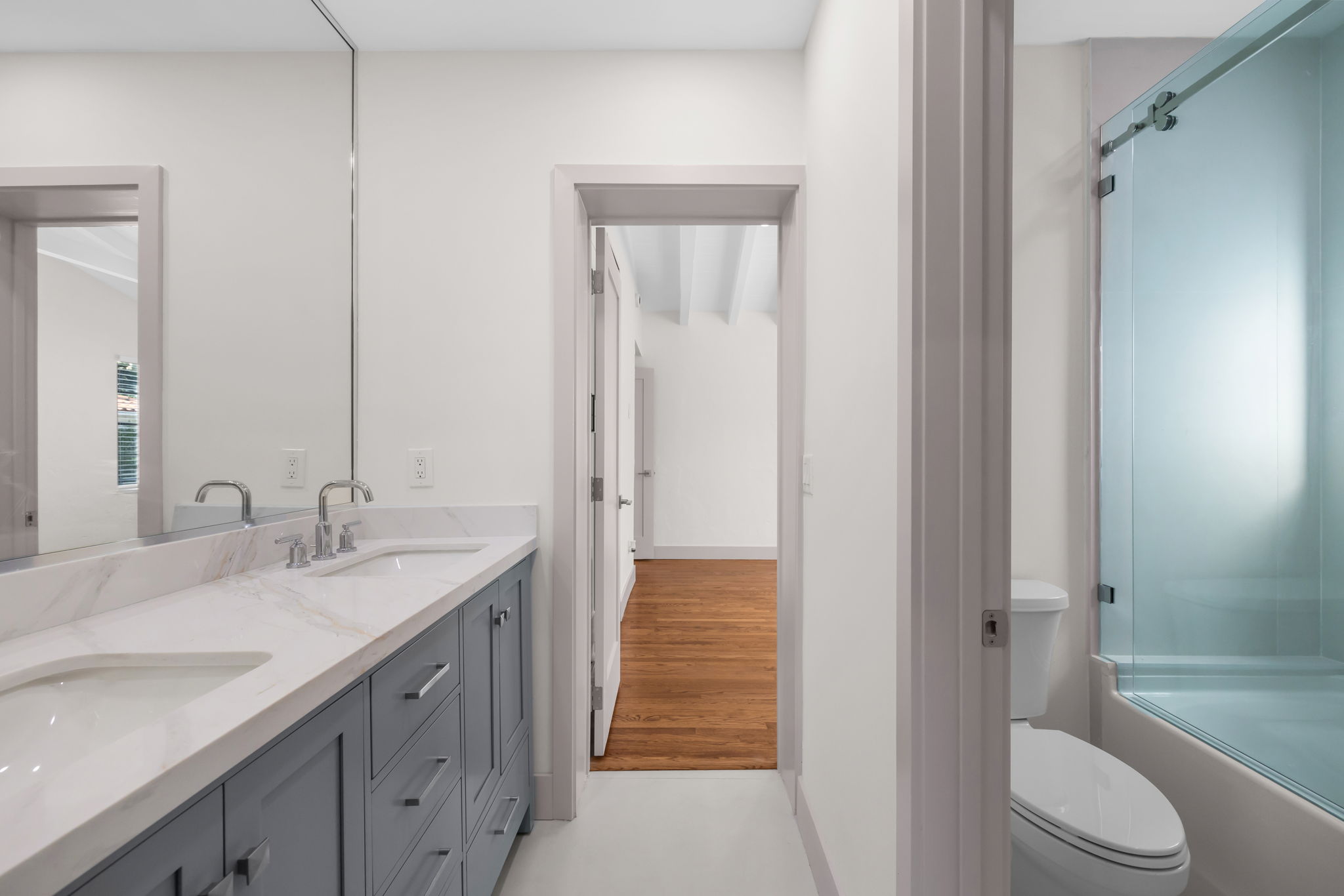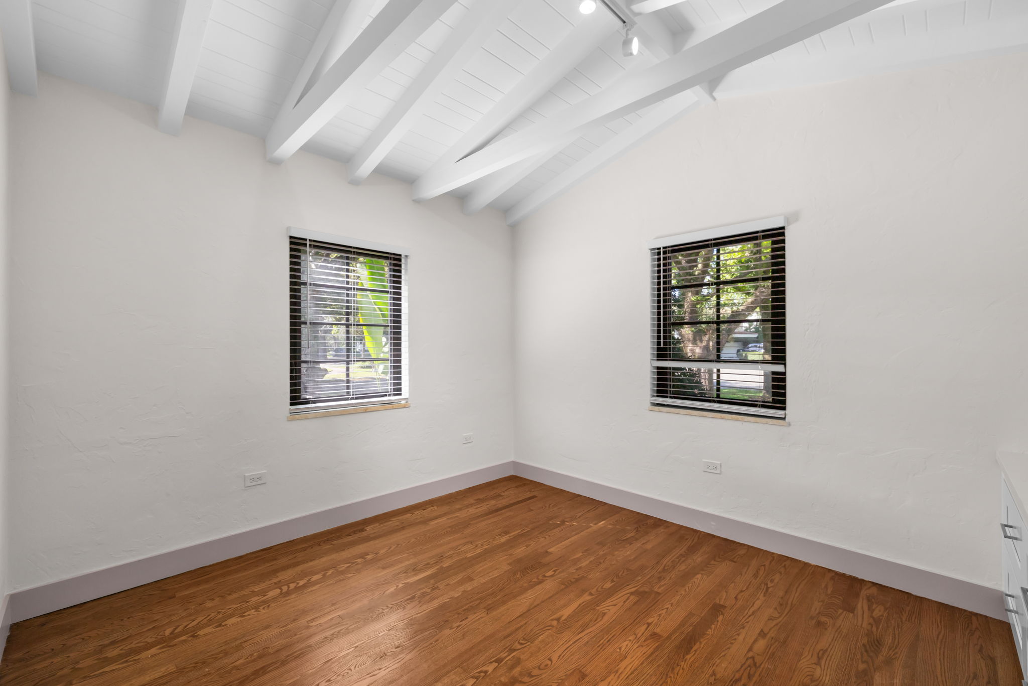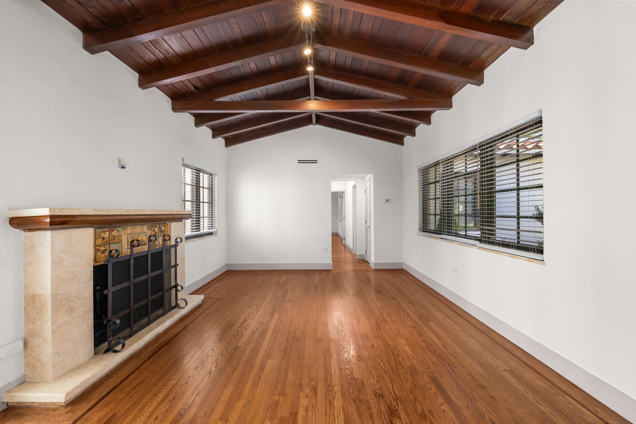 This charming home in the Golden Triangle offers a unique blend of historical character and modern amenities, ideal for a comfortable lifestyle. Built in 1938 and fully restored, this single-level residence features three bedrooms and three bathrooms, thoughtfully designed for ease of living. The interior boasts soaring cathedral ceilings and carefully curated spaces that create an inviting atmosphere, accentuated by impact windows and doors that enhance both safety and natural light.