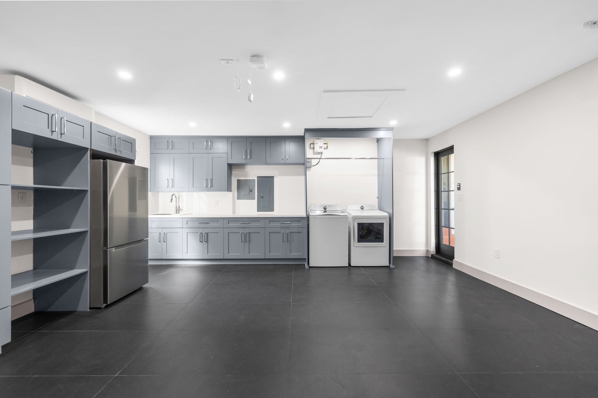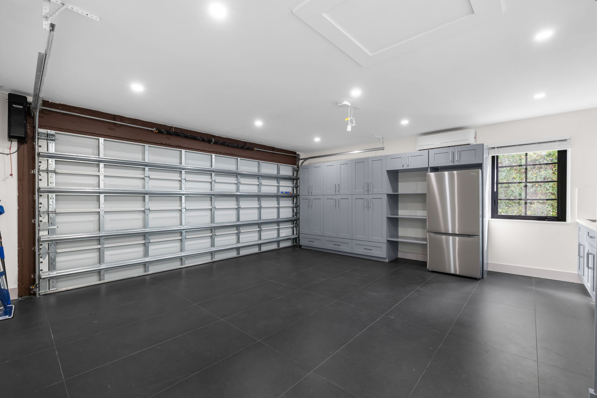 With a total of 1,708 square feet, the layout accommodates traditional living while also providing areas for home offices or study. The residence is equipped with three zones of air conditioning, ensuring optimal comfort throughout the year. Additional features include a fully finished garage, outfitted with custom cabinetry, a refrigerator, sink, washer, and dryer, making it not only practical but also a versatile space for various needs, including electric vehicle charging.