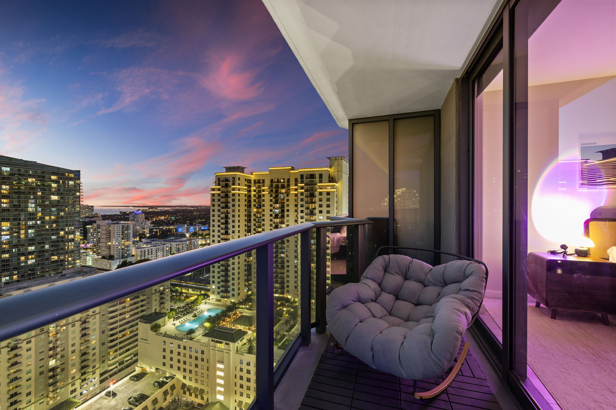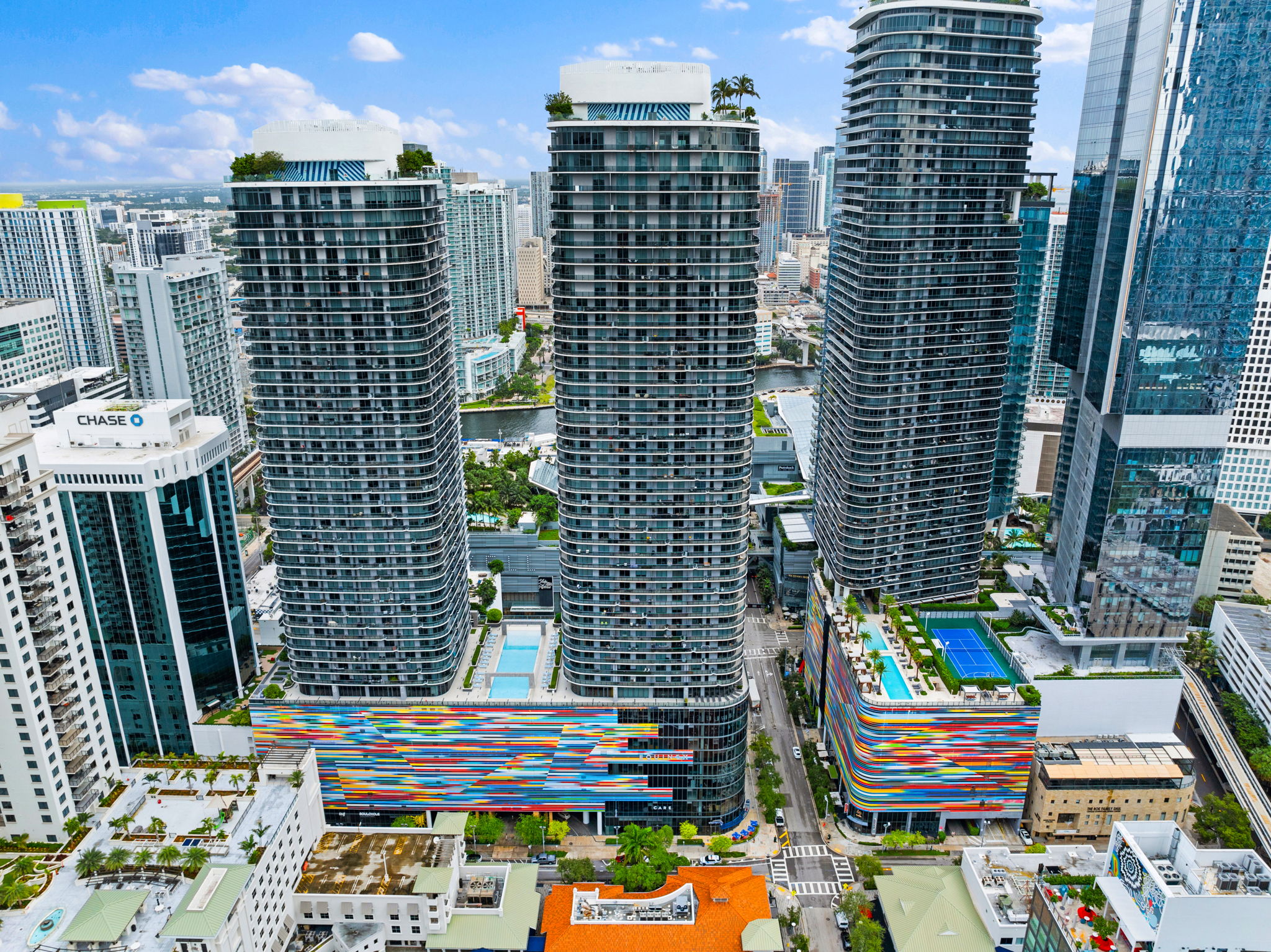 Residents of Brickell Heights East Tower enjoy a wide array of building amenities, including 24/7 concierge service, three pools, a jacuzzi, and a fully equipped fitness center. Additional features such as a sauna, steam room, business center, theater room, children’s playroom, and resident lounge further enrich the lifestyle available in this vibrant community.