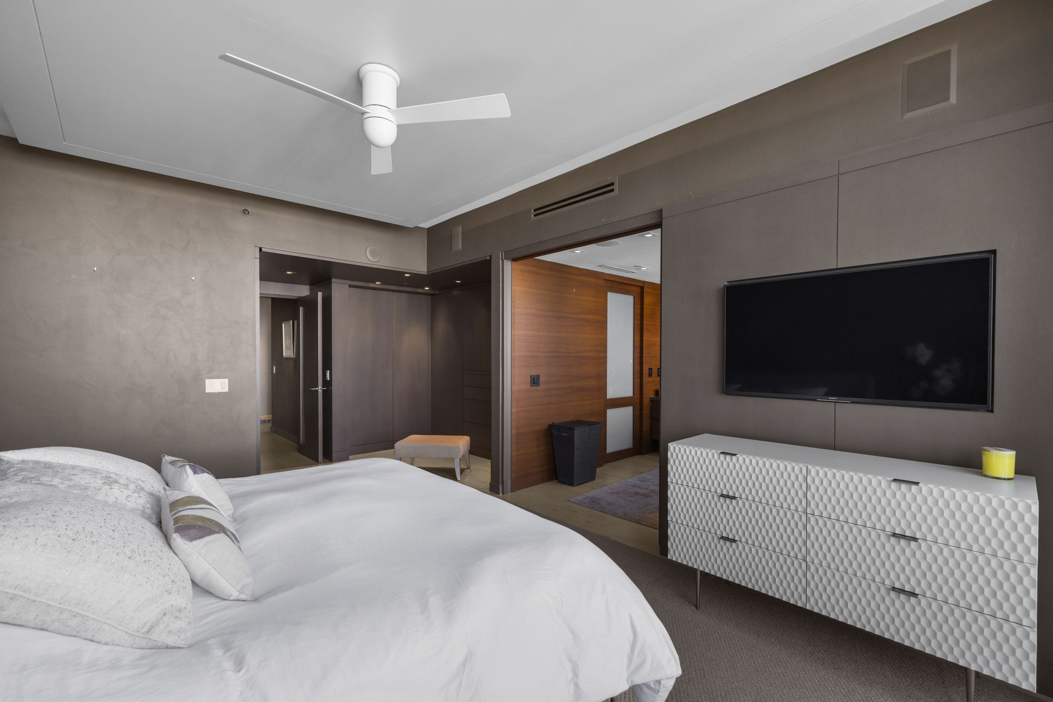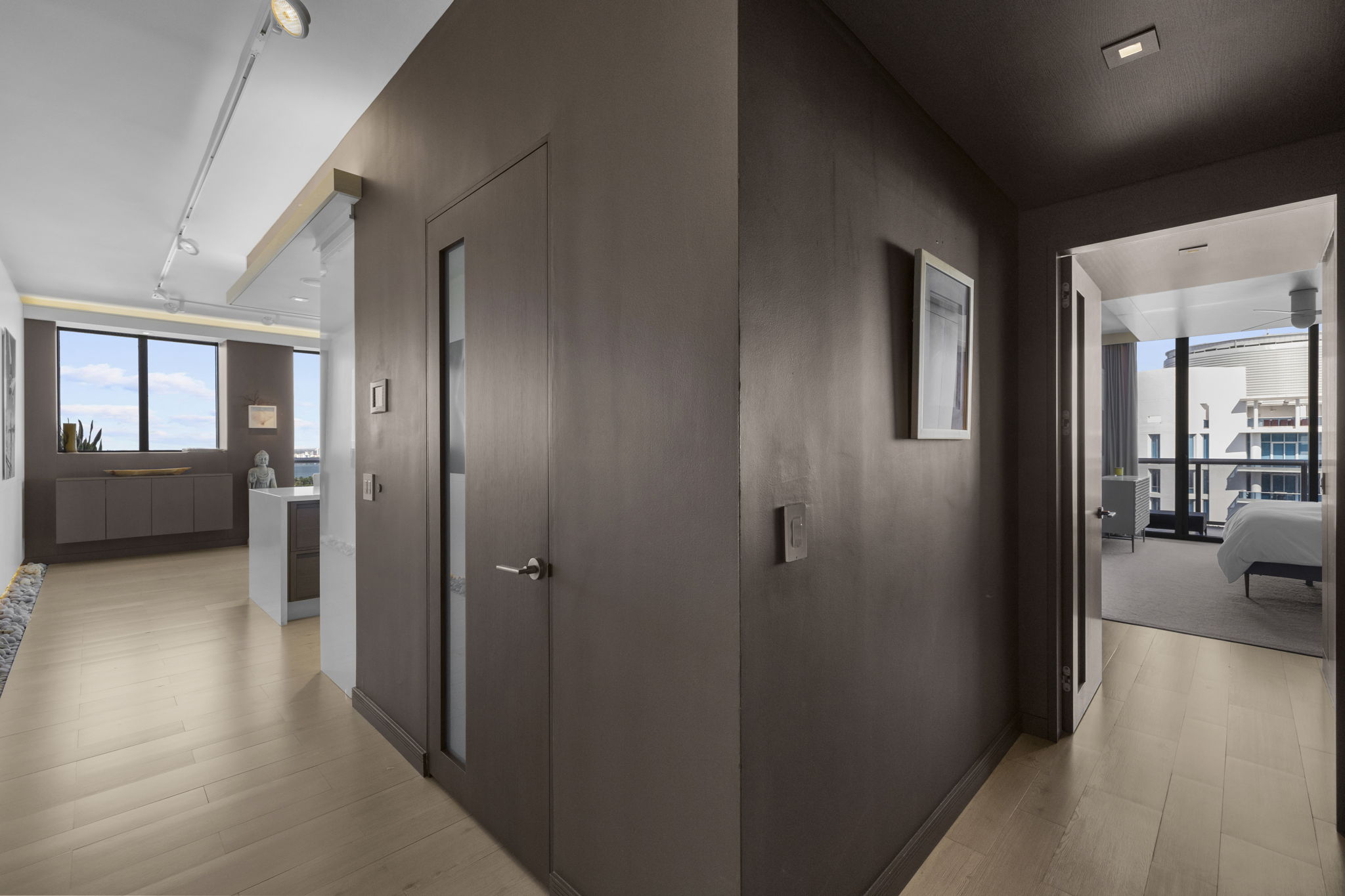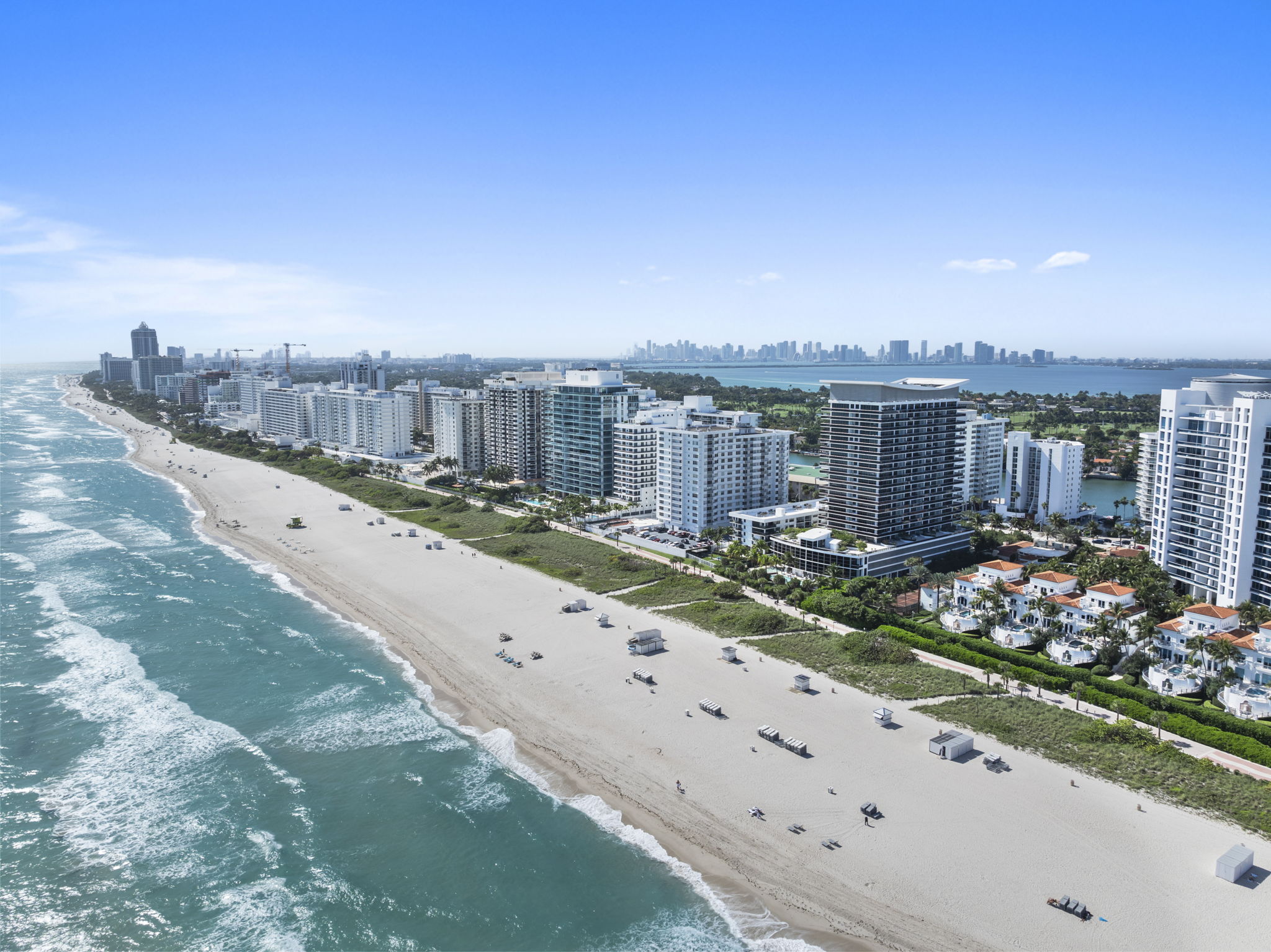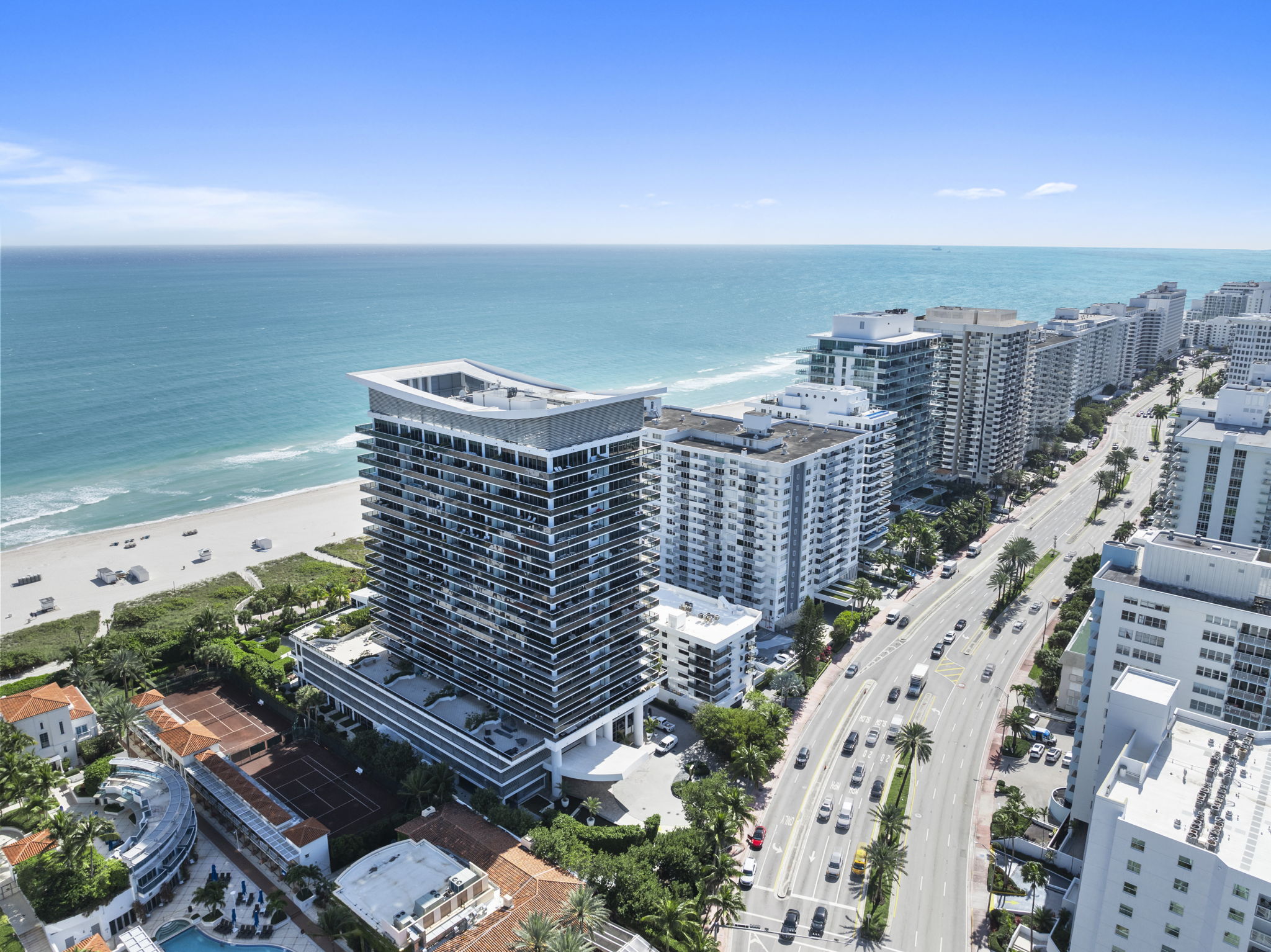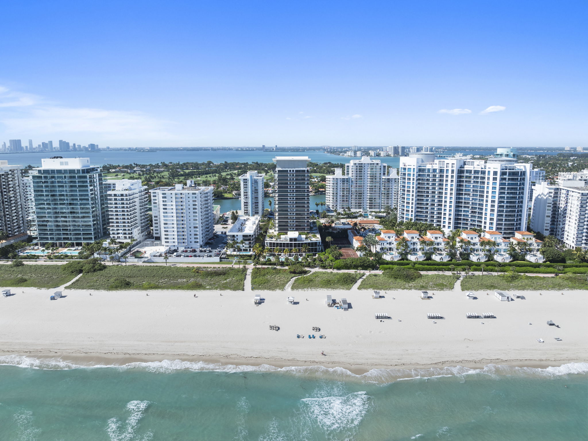 This beachfront penthouse in Miami offers a unique blend of luxury and comfort, featuring unobstructed views of the ocean and LaGorce Country Club. Spanning 1,323 square feet, the residence includes one bedroom, two full bathrooms, and an additional half bathroom, making it suitable for both relaxation and entertaining. Its thoughtful design is highlighted by refined finishes, such as solid-core oak doors and contemporary interiors.