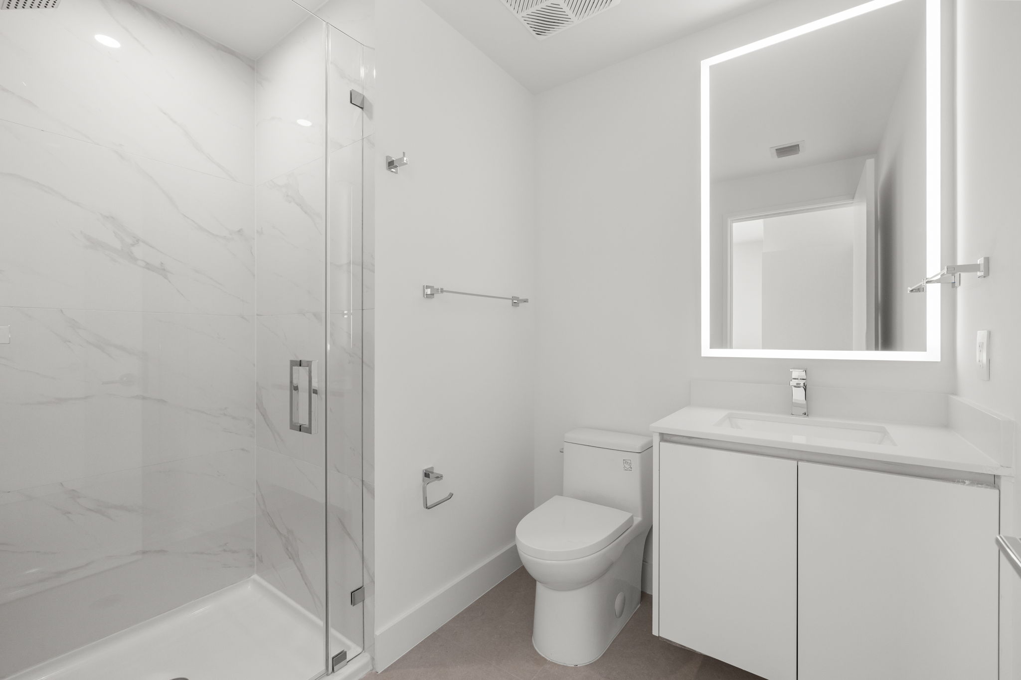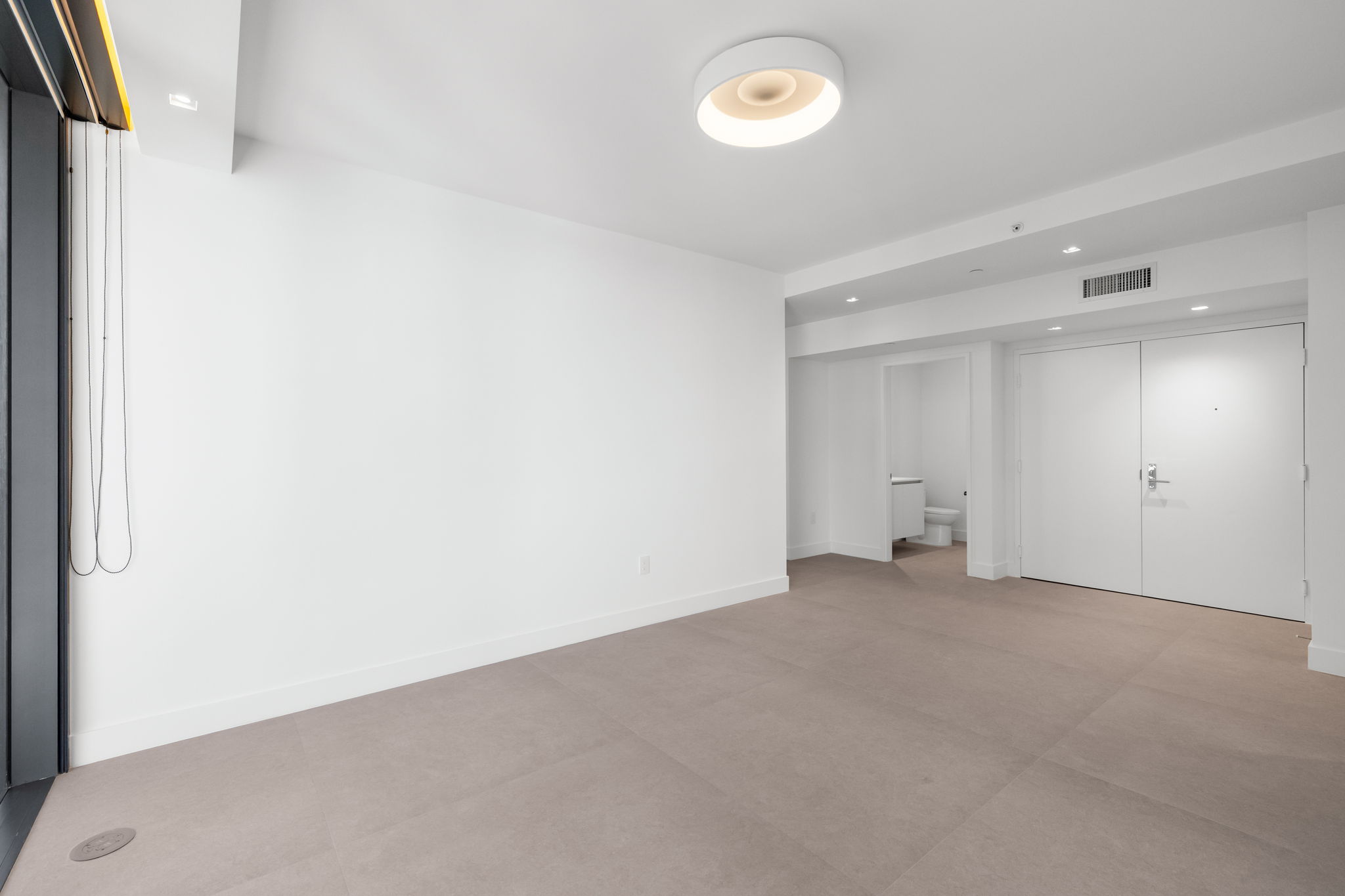 The property features a well-appointed kitchen with upgraded finishes, complemented by a designer lighting package that adds a touch of elegance. Thoughtfully designed elements such as 24×48 porcelain tile flooring, built-out closets, and motorized shades throughout further elevate this residence. The versatile den offers additional space for relaxation or work, while a private entry enhances convenience and privacy.