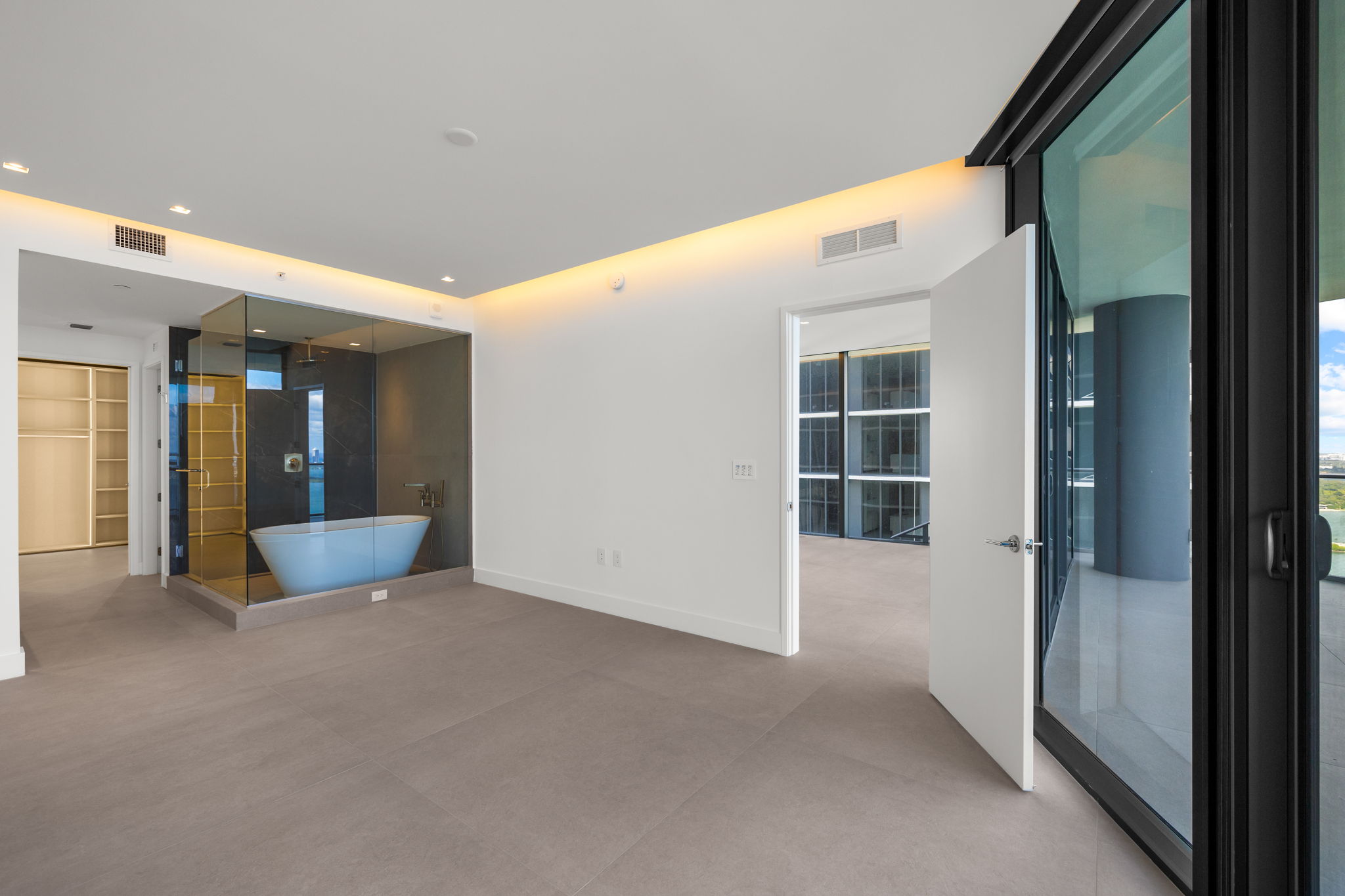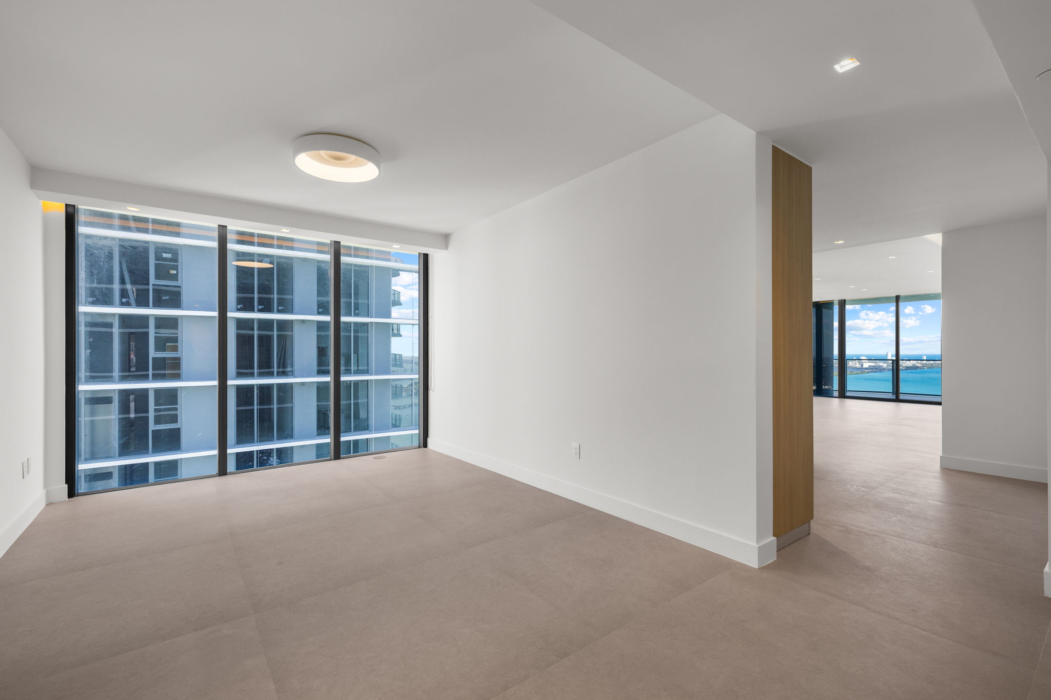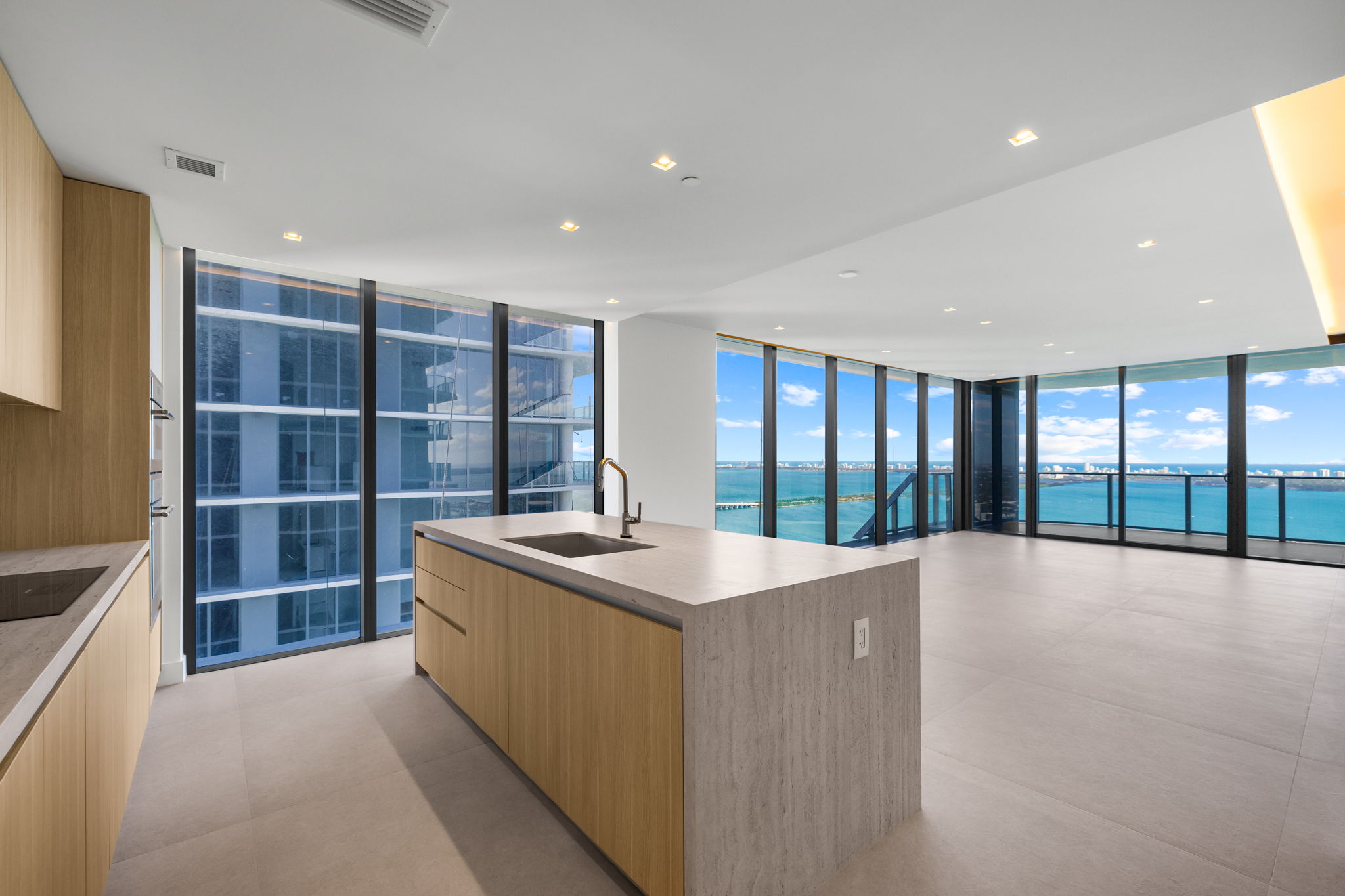 This exquisite property boasts an impressive layout with four bedrooms and five and a half bathrooms, providing ample space for comfortable living. Spanning 2,663 square feet, the corner residence is designed to maximize light and offers breathtaking, unobstructed views of Biscayne Bay, the Miami skyline, and the ocean. The 10-foot floor-to-ceiling windows invite natural light, enhancing the open feel throughout the home.